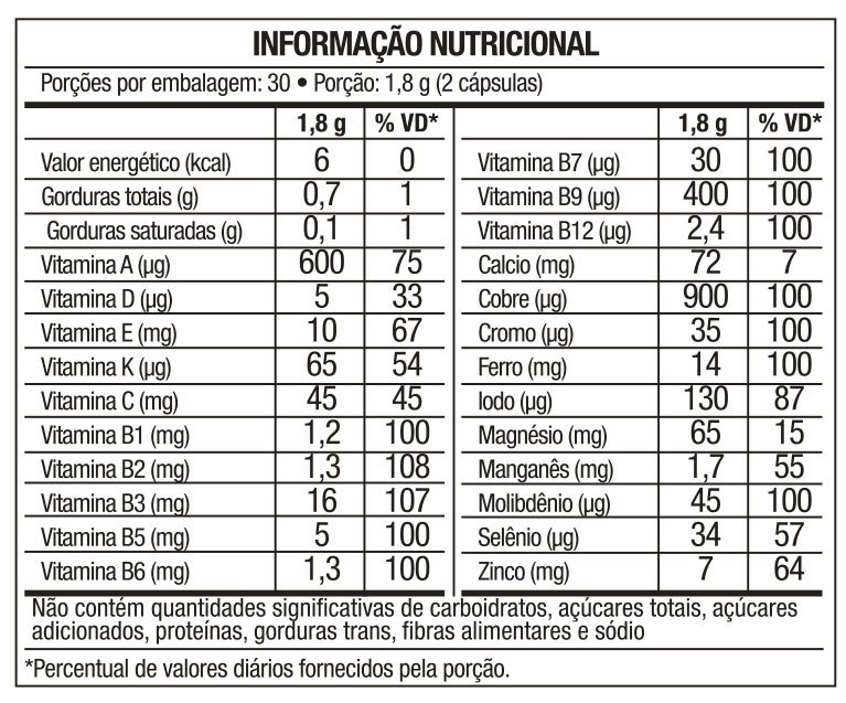 Multivitamínico diário especialmente formulado com vitaminas e minerais para pessoas com mais de 50 anos, ajudando na melhora da energia, metabolismo ação antioxidante, auxilia no funcionamento muscular, fortalece ossos e dentes e aumenta a imunidade.